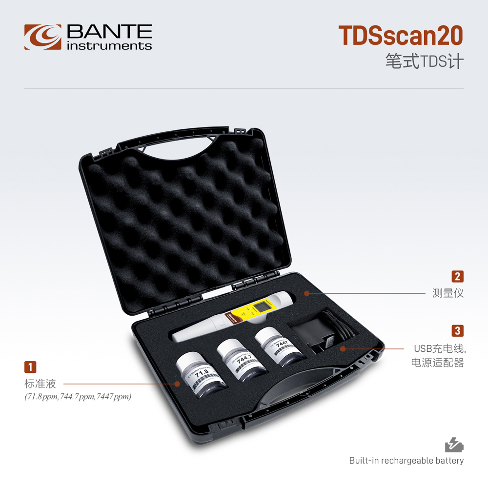 ? 1至3點(diǎn)校準, 自動(dòng)識別TDS標準液。